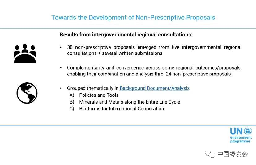 在政府间区域磋商中,涌现了38个非规定性提案,覆盖了五个地区的讨论内容,此外还有一些书面提交的提案。这些提案在某些方面相互补充和一致,经过整合和分析后形成了24个提案。这些提案按主题分类,主要关注矿物和金属的全生命周期,同时也强调了国际合作的重要性。这些提案将在会议中发挥重要作用,为制定政策和决策提供重要参考。