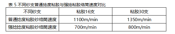 (3) 粘胶强捻纱弹性大,成纱筒子卷绕紧密,络筒张力偏低掌握;粘胶强捻纱强力低纱疵多。