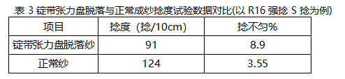 (3) 由于 S 向强捻纱的捻缩较大,关车更换钢丝圈时纱条容易打扭,在管纱上起圈,引起开车断头,所以在更换钢丝圈时,必须落纱后空管更换。