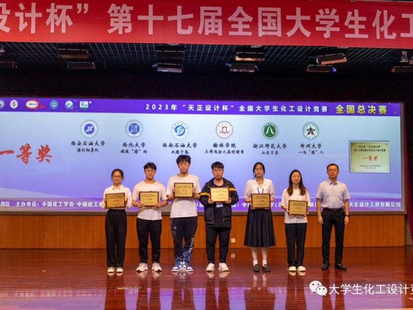 8月16-22日,由中国化工学会、中国化工教育协会主办,中国石油大学(华东)承办,中国石油大学(北京)协办,浙江省天正设计工程有限公司冠名赞助的“天正设计杯”第十七届全国大学生化工设计竞赛全国总决赛在青岛中国石油大学(华东)顺利举办。我院满腹“腈”纶团队(成员:李成然、杨一恒、段睿阳、刘宇浩、梁国浩)自3月份组队以来在赵彬然、陈立宇、郝青青、吴乐、聂艳等老师的指导下,历经5个月的作品打磨,经过校赛、省赛、西北赛区决赛、全国总决赛的层层比拼,最终发挥出色,荣获全国总决赛一等奖。