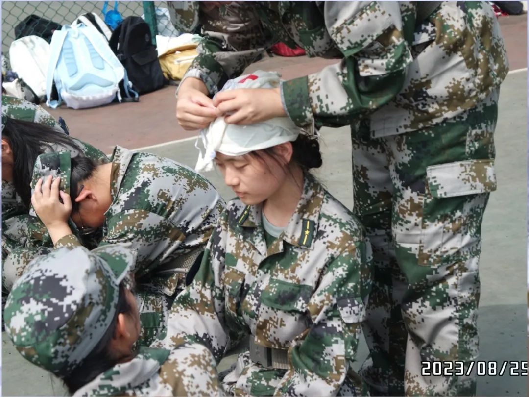 通过战地医疗救护,学生们学习到了包括受伤包扎、手臂腿部固定、伤员搬运、心肺复苏等诸多技巧。例如,止血可用指压止血法、止血带止血法,包扎应注意快准轻牢细,对待心脏骤停的紧急情况应优先胸外心脏按压,而后人工呼吸等等。
