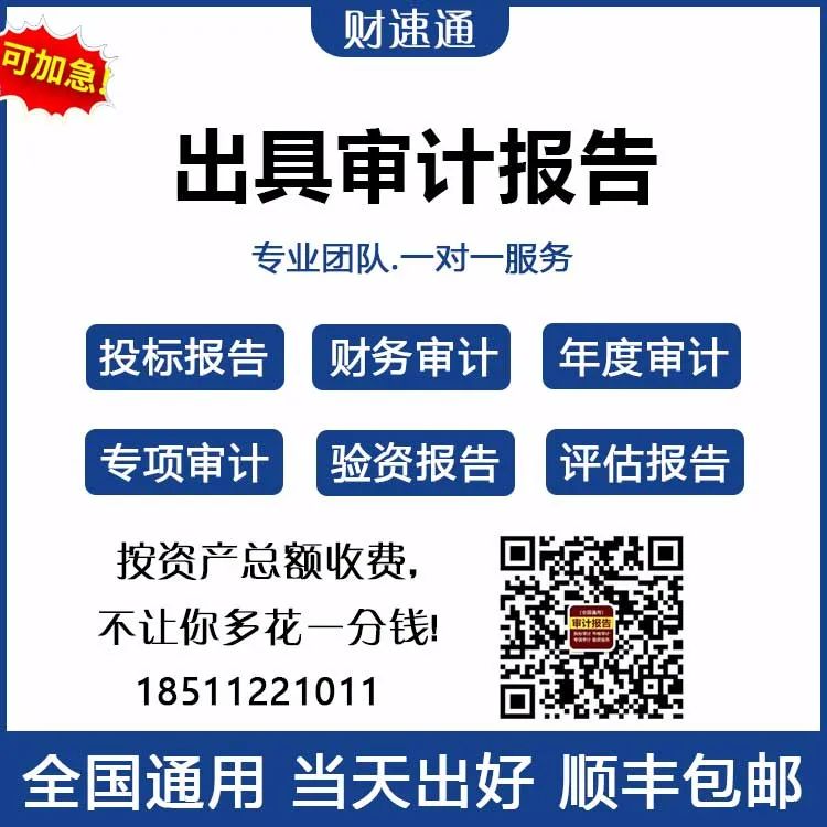 微.信搜[财速通审计报告]eshenji 承接各类审计报告业务:年度审计、专项审计、离职审计、投标审计、资产评估报告等各类审计鉴证业务.专业团队,快速报告.