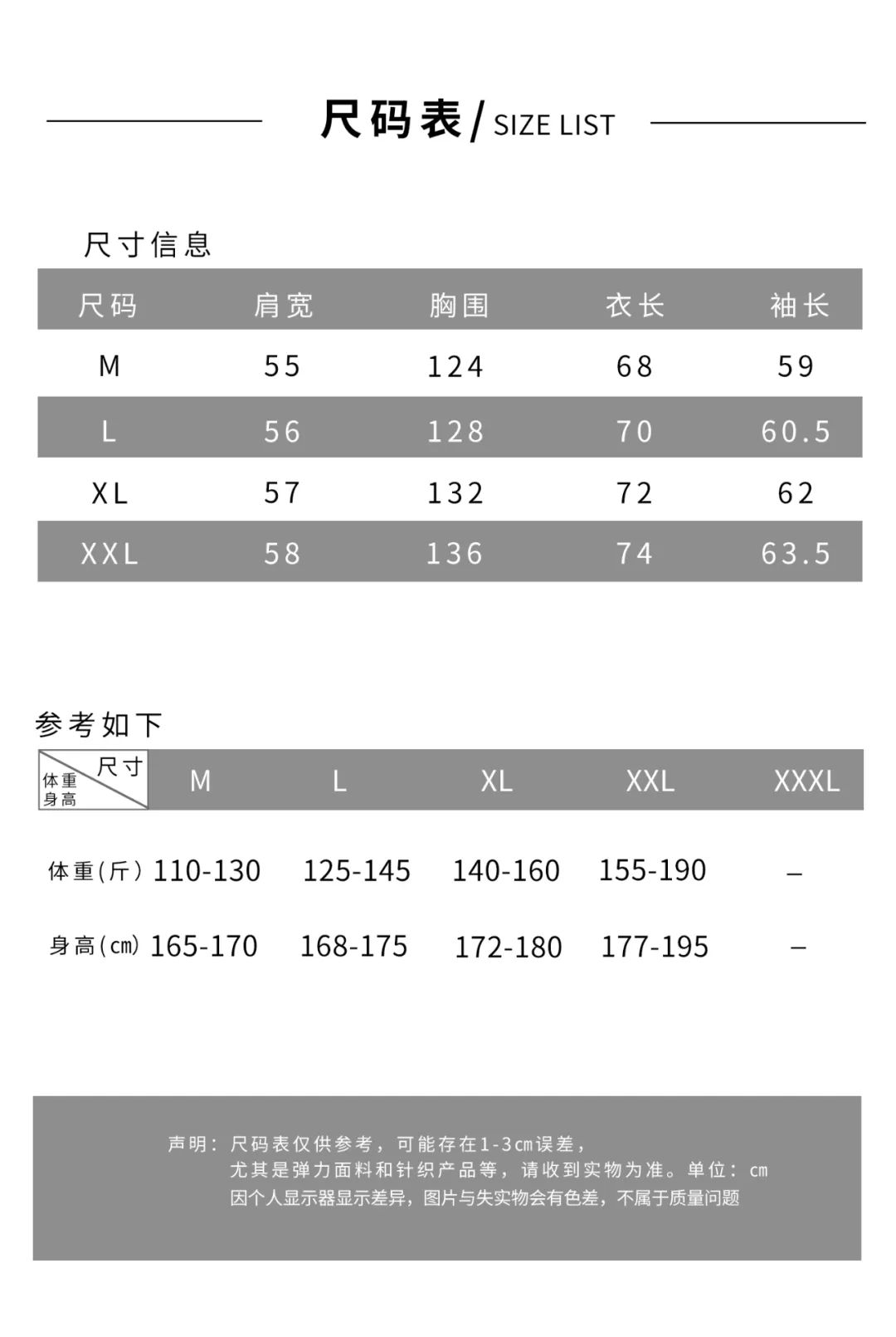 尺码:M~2XL