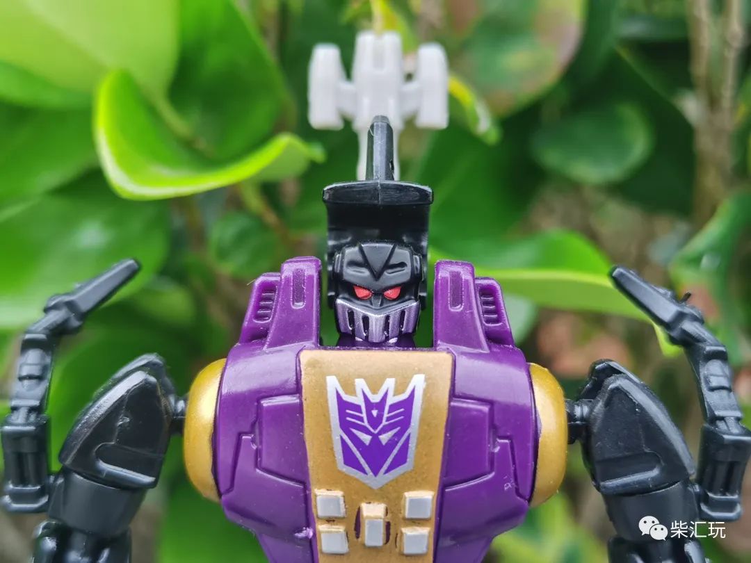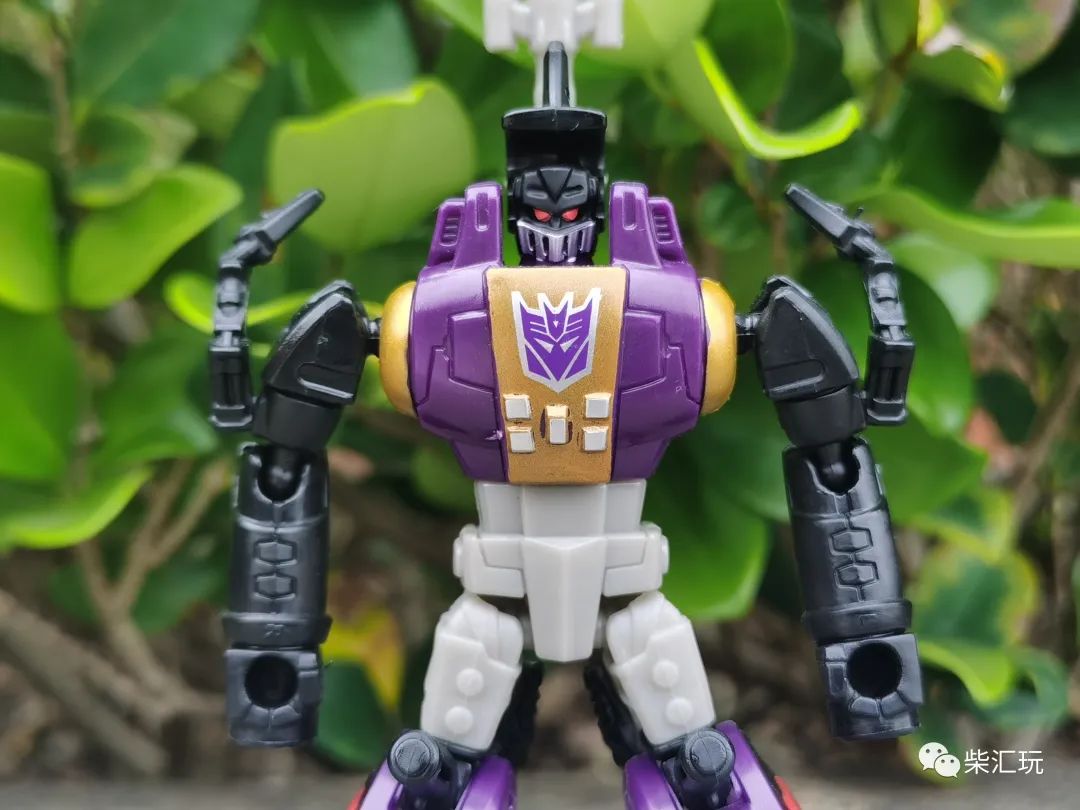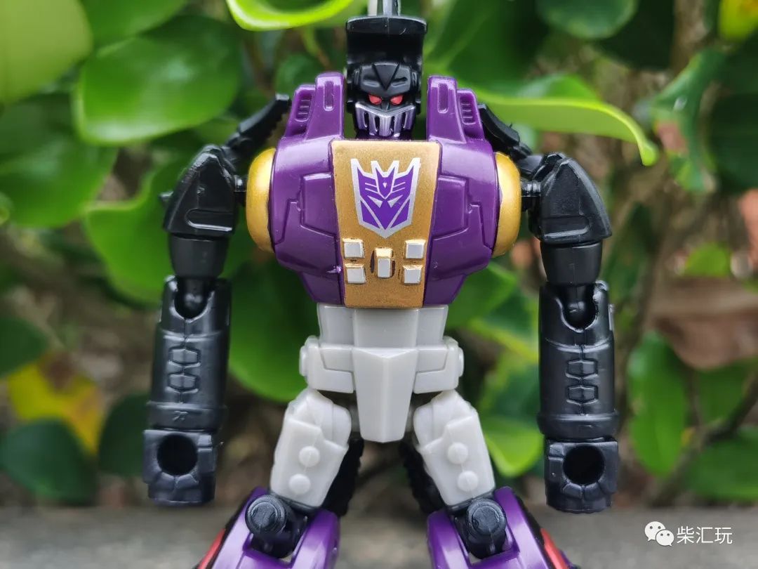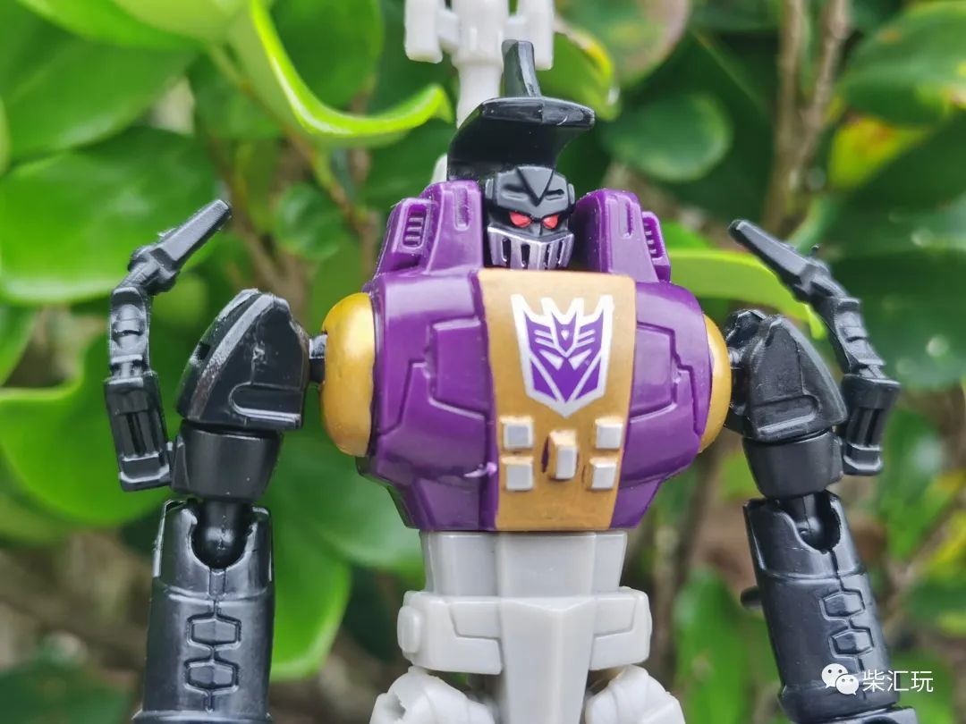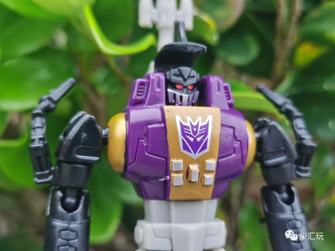 胸口中央有巨大的霸天虎标志,不过旁边的金色涂装瑕疵较多,看着有点不舒服。