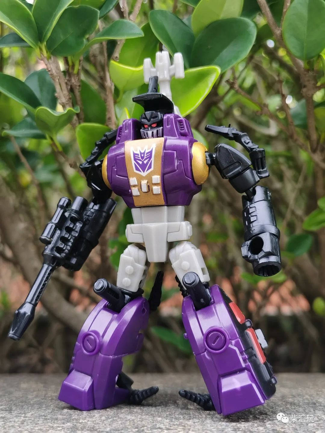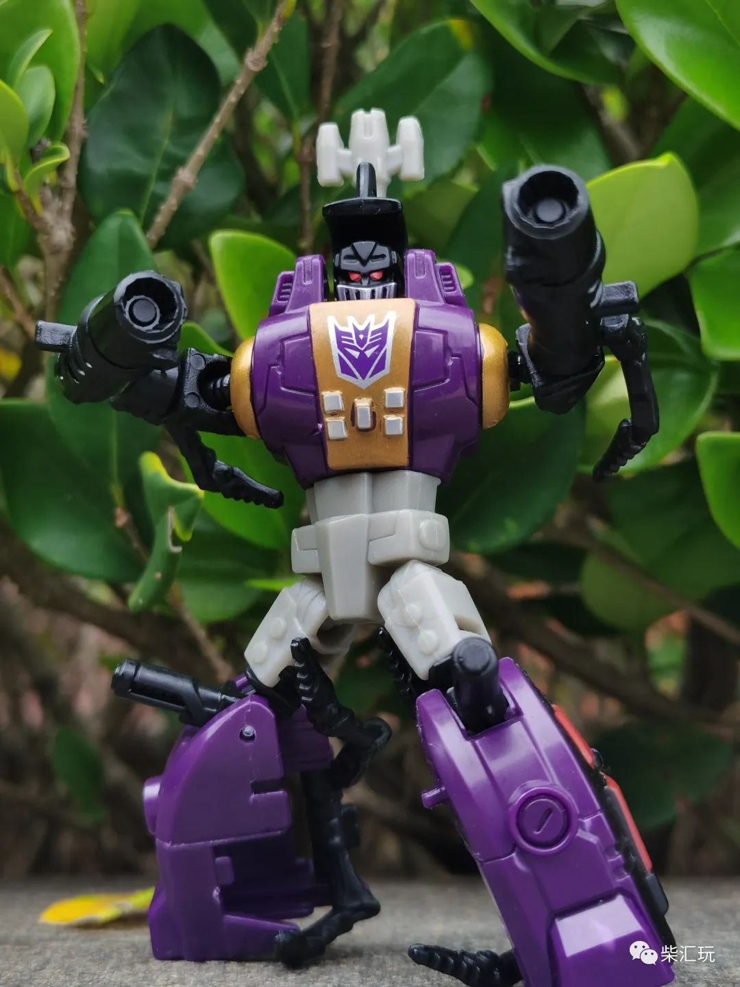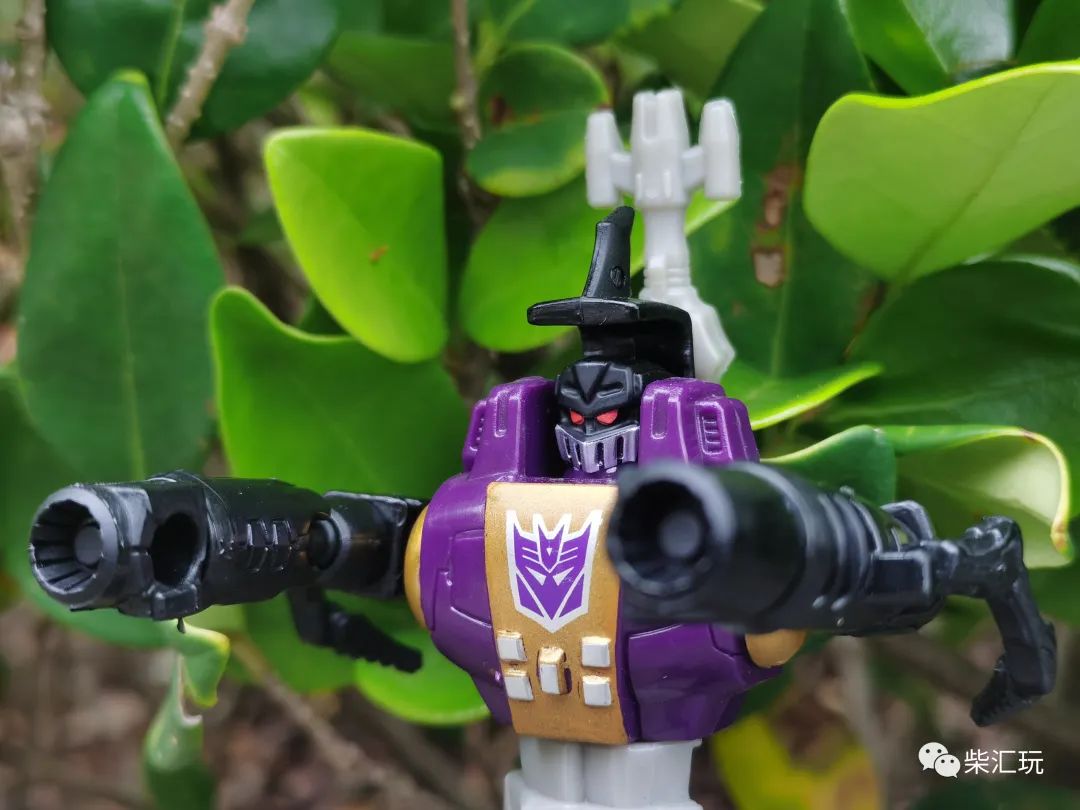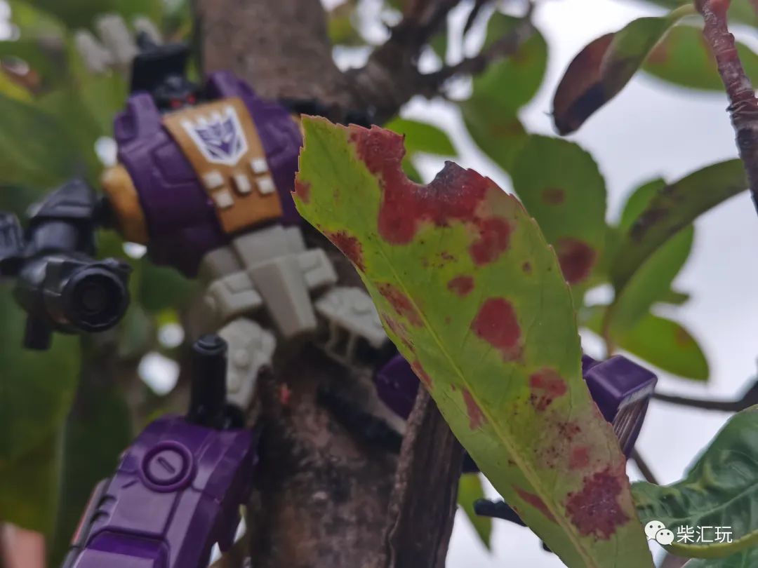 胸口中央有巨大的霸天虎标志,不过旁边的金色涂装瑕疵较多,看着有点不舒服。
