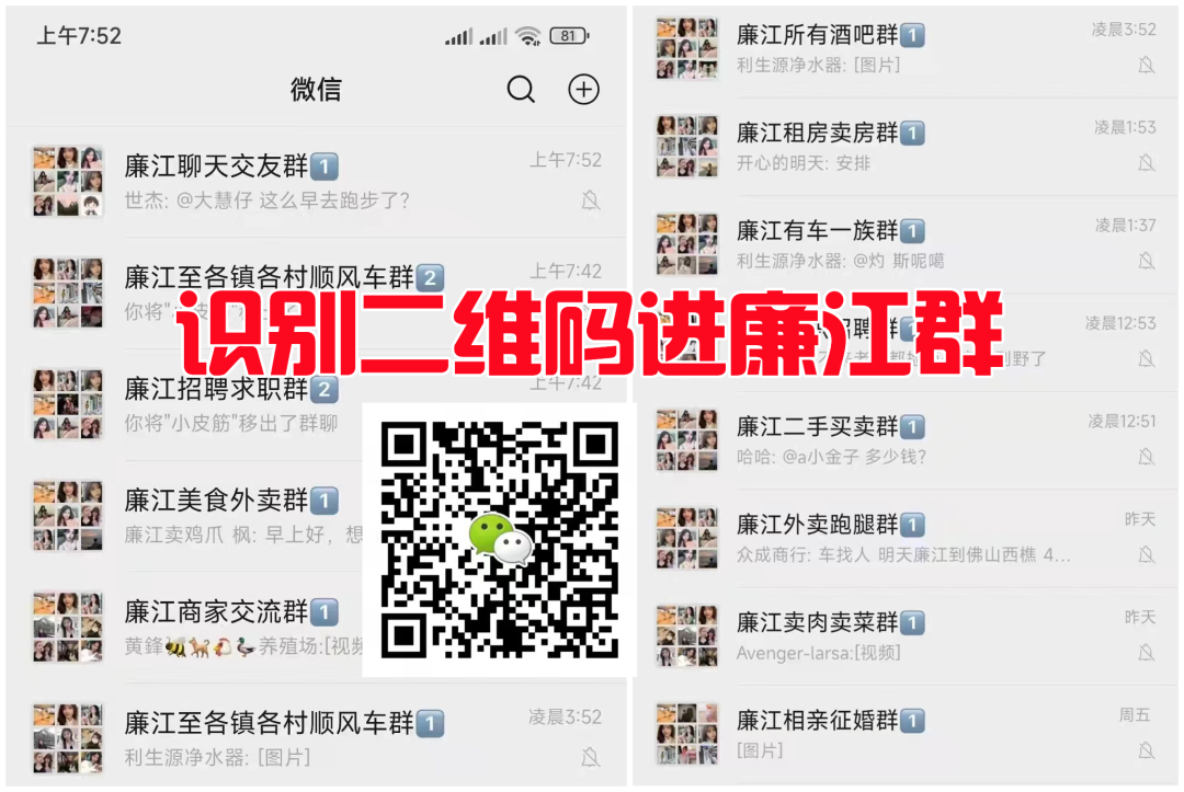▲ 需要进廉江便民群,识别二维码回1进群