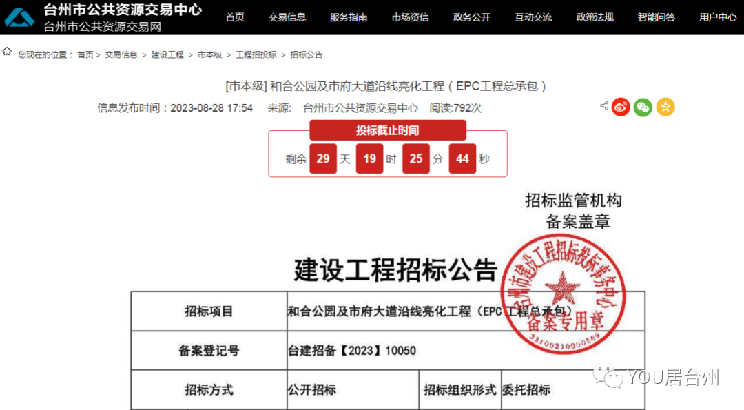 公告资料:台州市公共资源交易网