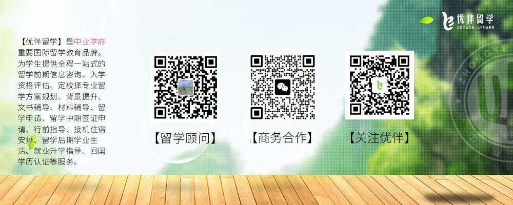 优伴留学是中业学府重要国际留学教育品牌。为学生提供全程一站式的留学前期信息咨询、入学资格评估、定校择专业留学方案规划、背景提升、文书辅导、材料辅导、留学申请、留学中期签证申请、行前指导、接机住宿安排、留学后期学业生活、就业升学指导、回国学历认证等服务。公司与知名的公立、私立大学长期保持良好合作关系,源源不断为其高等教育输入国内数万名优质生源。