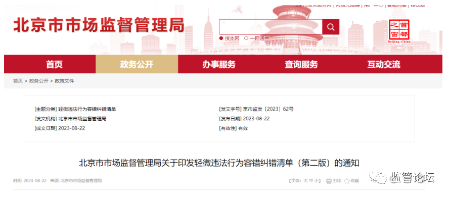 北京市市场监督管理局关于印发轻微违法行为容错纠错清单(第二版)的通知