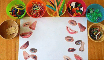 这个故事中小象和小猪有非常丰富的表情,家长可以带着孩子一起来玩“制作表情包”的游戏。在废弃的旧报纸或者杂志中翻找出一些头像照片,准备一些零散的部件,例如牙签、橡皮筋、毛线、绳子、彩色纽扣、塑料宝石等等,还有一张大白纸,把头像照片的各个部位裁剪分散,让孩子自己随意地拼凑看看会发生什么不同的“表情包”。