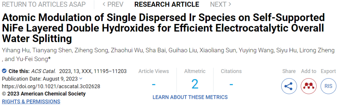 北化工ACS Catal.:NiFe-LDH负载单原子高效电催化整体水分解