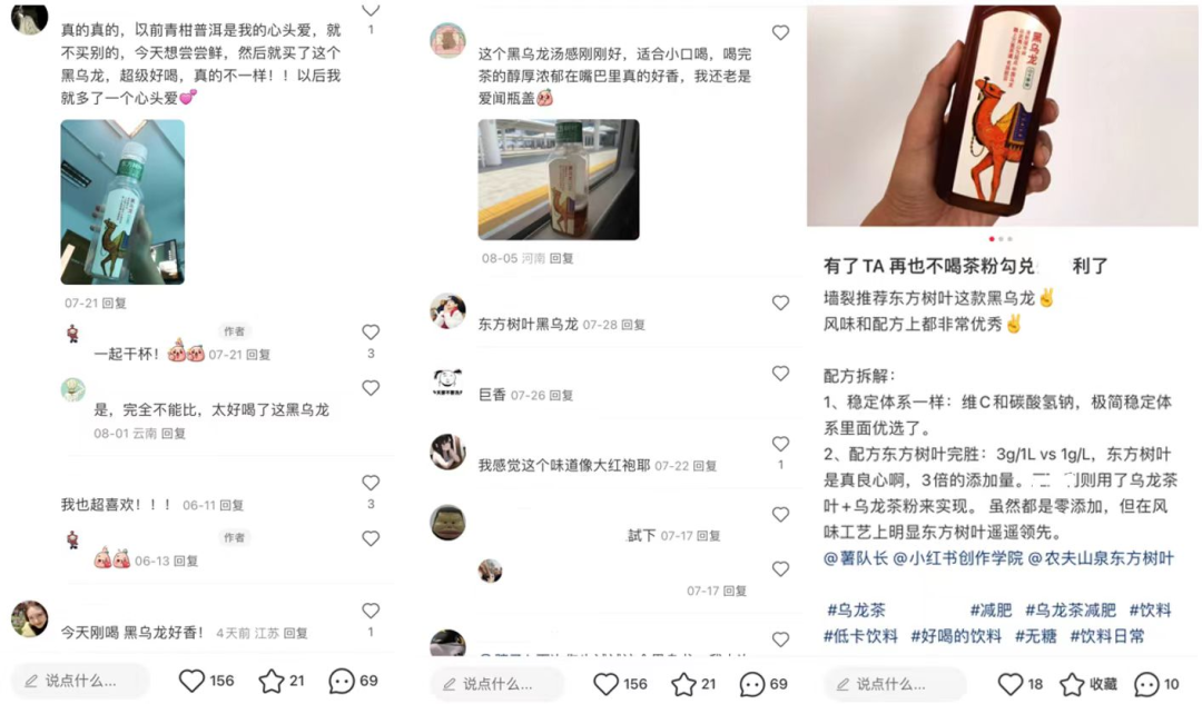 纵观上半年社交媒体平台的话题,东方树叶似乎正迎来消费者对其品质评价的新高峰,口碑甚至全面超越已经有40多年历史的某日系无糖茶品牌。8月下旬,一条东方树叶与该日系无糖茶品牌比较的词条长时间霸占微博热搜榜第一位。在这个话题下,大多数的网友认为东方树叶是他们的无糖茶首选。同时,在其它平台,关于东方树叶的讨论热度也呈现几何级上升的趋势。