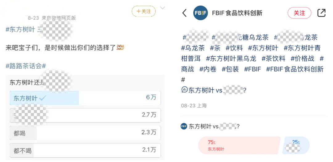 (社交媒体平台上,当消费者被问首选哪个无糖茶产品时,东方树叶获得压倒性多数)