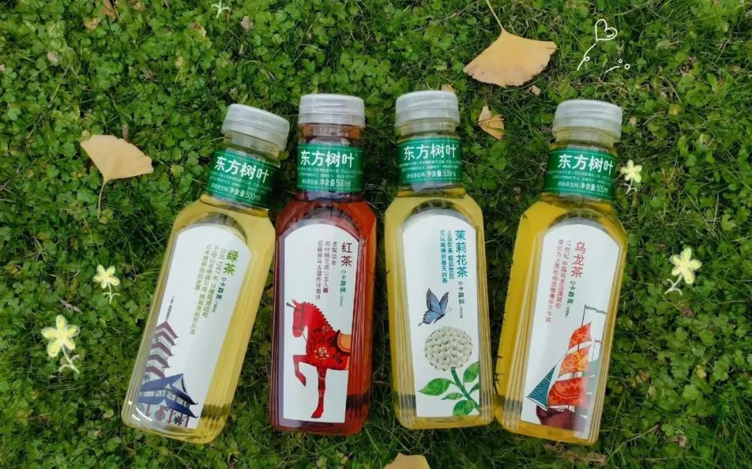(得益于独门抗氧化技术,东方树叶采用了瓶身双面透明设计。通常茶饮料会因为惧怕氧化变色而采用全包裹标签)