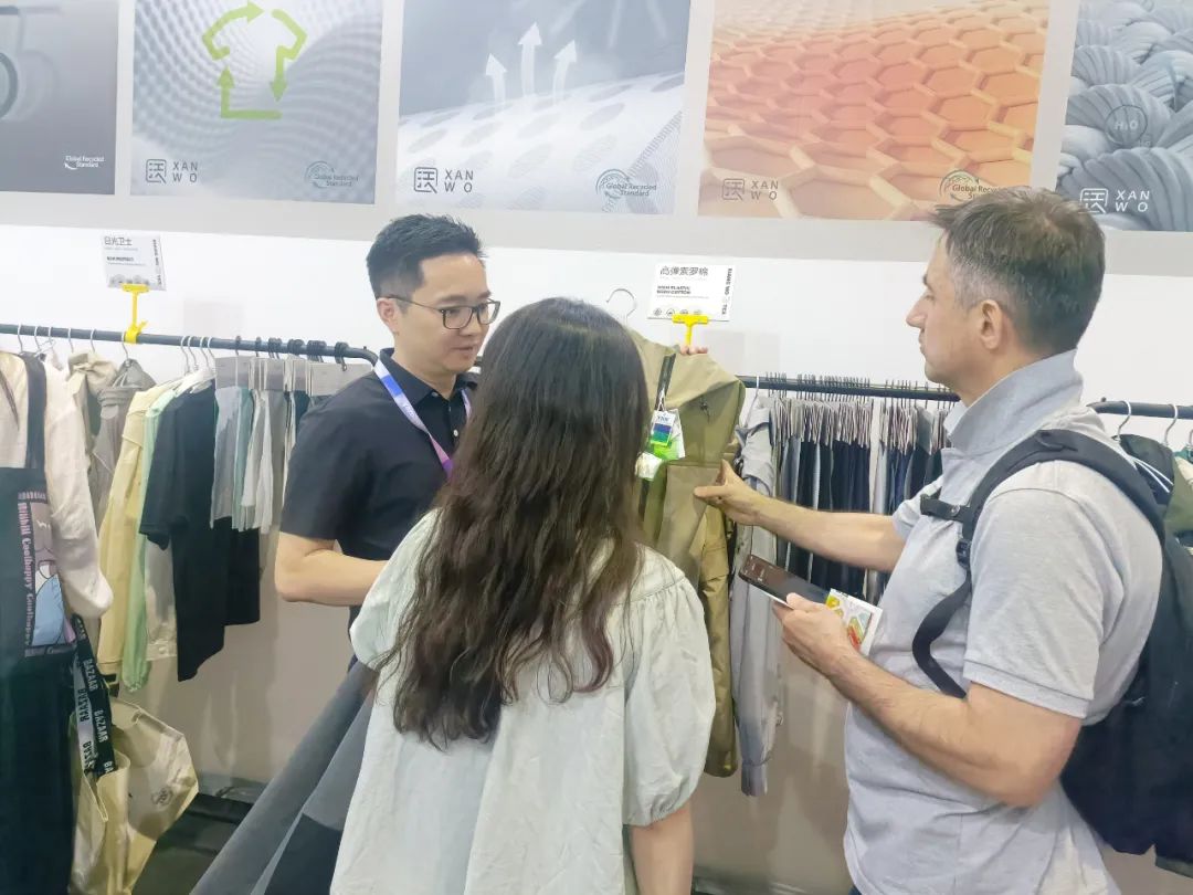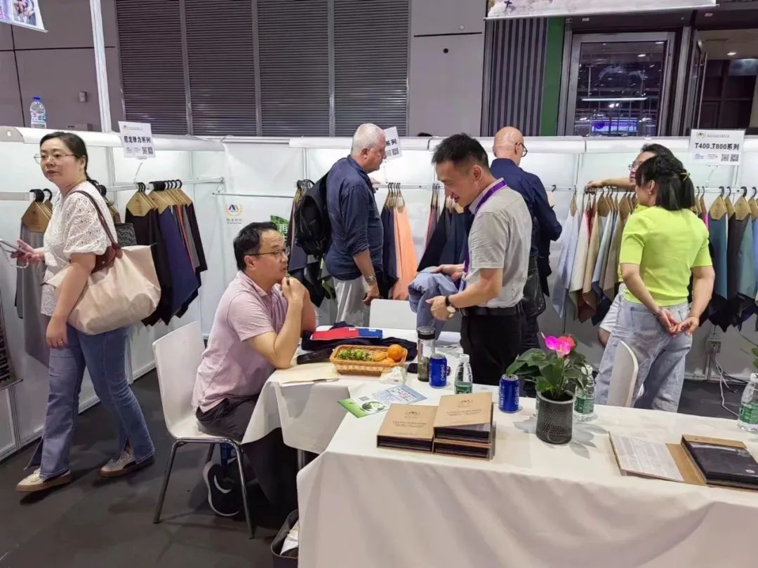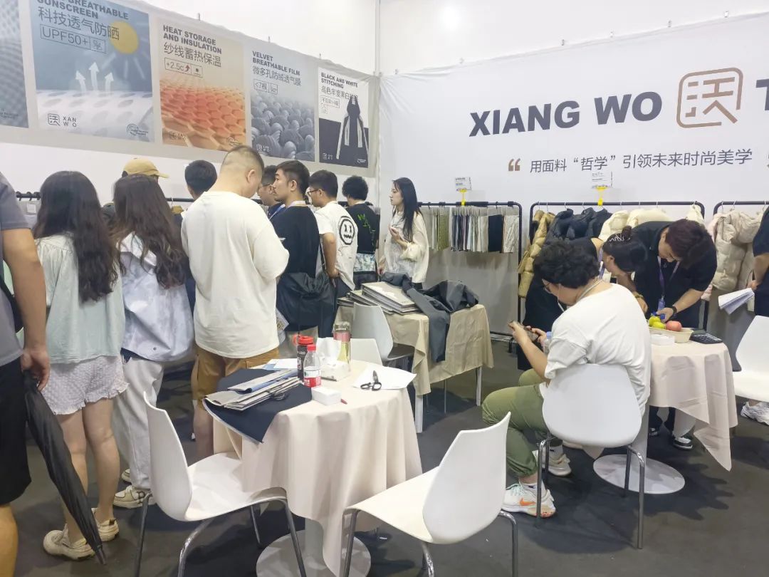 翔沃纺织一如既往带给大家的是惊喜,吸引了一波又一波客商驻足、逗留、洽谈。本次参展产品有高弹索罗棉、三明治提花、记忆四面弹、日光卫士,还有十佳设计师精心打造的24/25AW流行企划和原创样衣,让每一位走进展位的客商都不虚此行。