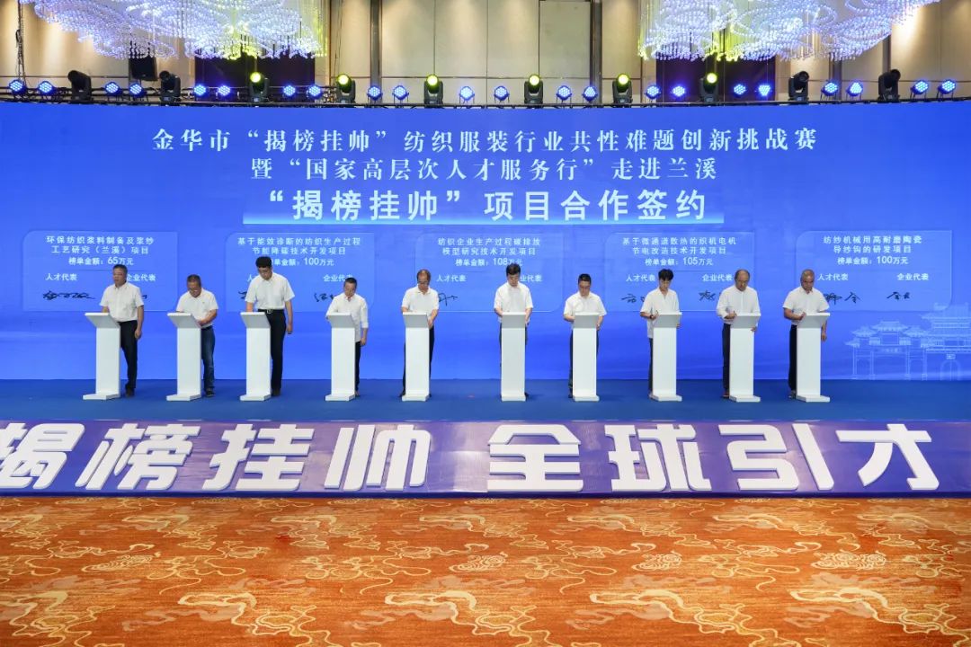 8月25日上午,金华举行“揭榜挂帅”纺织服装行业共性难题创新挑战赛暨“国家高层次人才服务行”走进兰溪活动启动仪式,各路专家英才齐聚兰溪共谋创新、共解难题、共图发展。