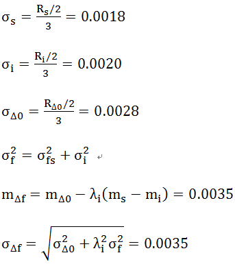 R∆f = m∆f ± 3σ∆f = + 0.014至- 0.007