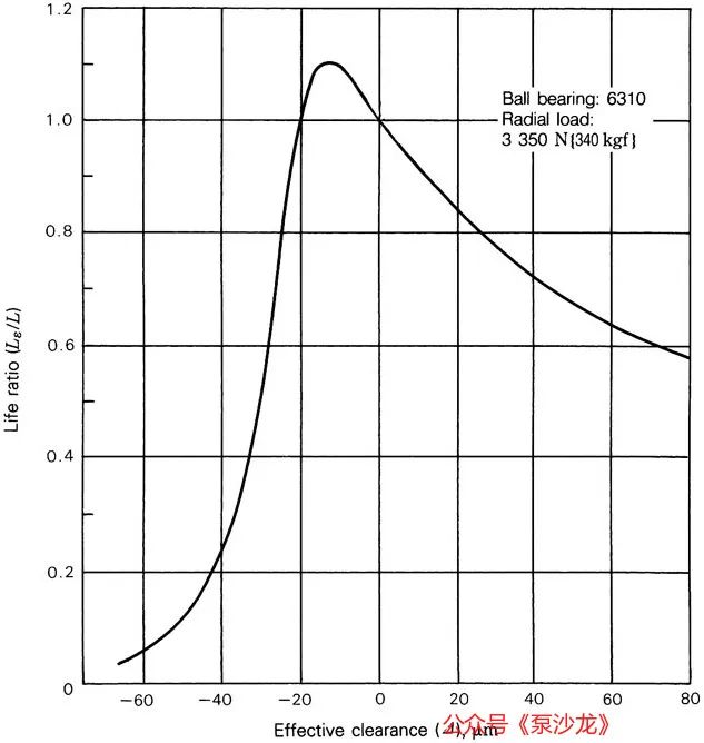 图2:6310滚珠轴承有效间隙与轴承寿命的关系