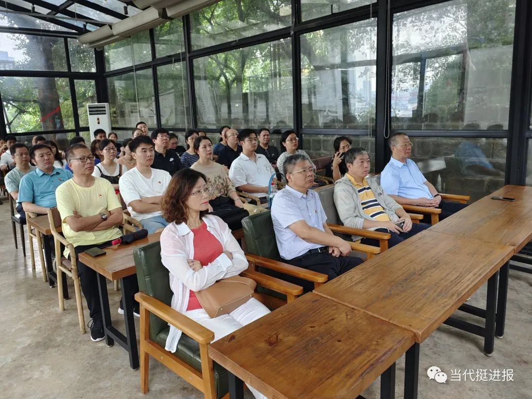 跟随讲解员的步伐,全体党员走进《挺进报》旧址。展厅内,一幅幅图片、一段段视频,生动展现了陈然等老一辈共产党人艰苦卓绝的斗争岁月。大家认真参观、仔细品读,在学思践悟中体会革命先烈的崇高思想境界与浩然革命正气。