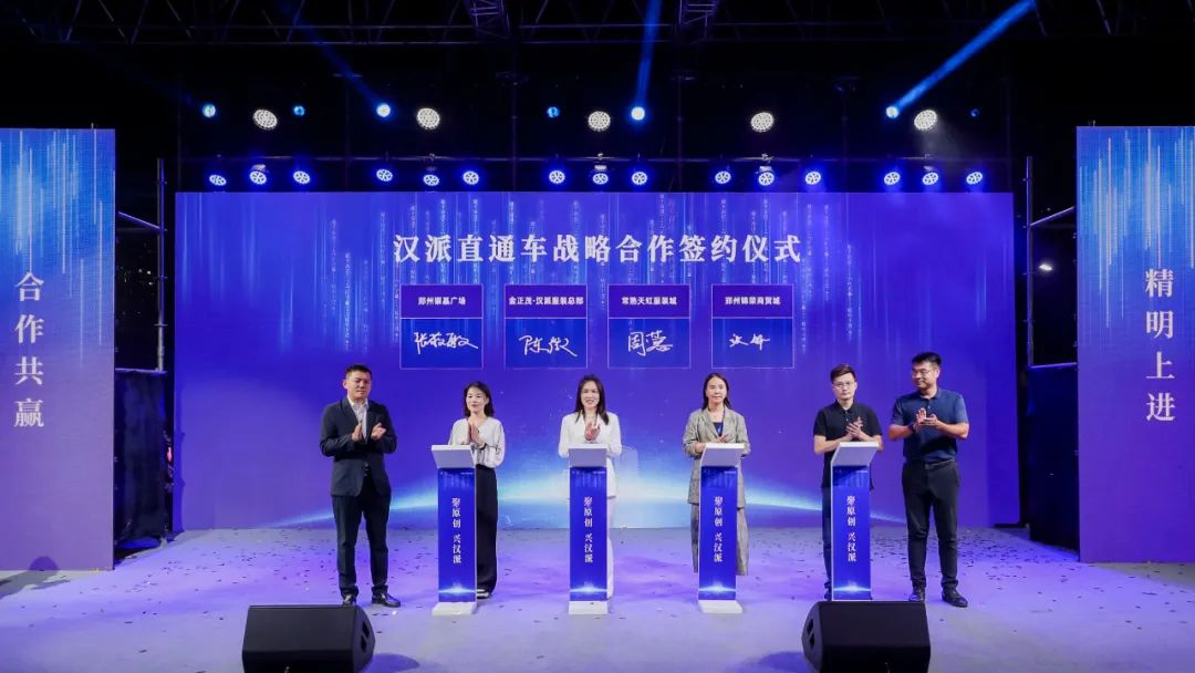 金正茂·汉派服装总部作为汉派服装推广者,现场还与常熟天虹服装城、郑州银基广场、郑州锦荣商贸城嘉宾代表共同签署“汉派直通车”战略合作协议,扩展全国服装市场,对接优质厂商资源,为总部市场实现长久创新发展,共助汉派蓬勃兴旺。