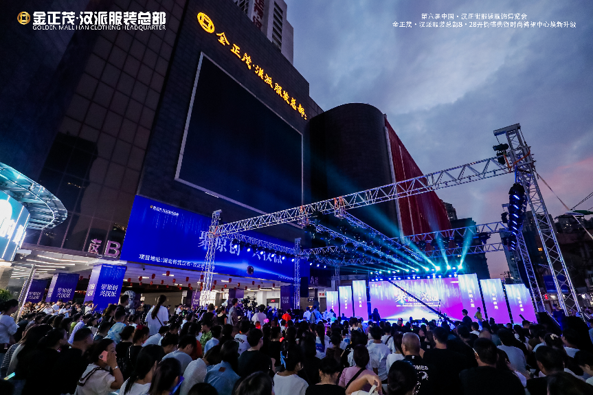 夜幕时分,金正茂·汉派服装总部8·28开街盛典晚场正式揭开帷幕。