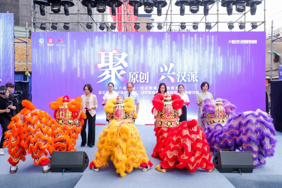 金正茂·汉派服装总部8·28开街盛典在“祥狮点睛”中拉开序幕。五彩祥狮登台献瑞,向现场的来宾们献上美好祝福。一楼庆典仪式结束后,由五福财神、灵动祥狮、汉服美女组成的送福团队走进金正茂·汉派服装总部楼层内,为各楼层商户送去祝福。