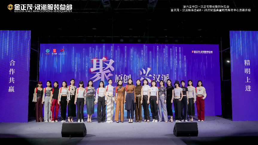 活动现场,万余款秋冬新品齐聚。金正茂·汉派服装总部特邀武汉时装周新锐本土设计师品牌KAAMOS,携手明妮、华一兄弟、邦妮娜、依卓娅欣、晶の檬、鑫禾6家原创汉派女装品牌震撼演绎秋冬大秀,以极具个性的先锋新潮,揭启国潮时尚篇章。伴着动感的音乐和炫彩的舞美,模特走上梦幻摩登的T台,自信秀出新一季的秋冬时尚潮流新态,重释汉派女装独特设计魅力。