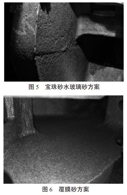 (1)使用覆膜砂作为铸钢件的砂型材料,不仅可以解决铸钢件的冷隔、褶皱等表面铸造缺陷,而且可以提升表面粗糙度,较好地提高铸钢件的表面质量。