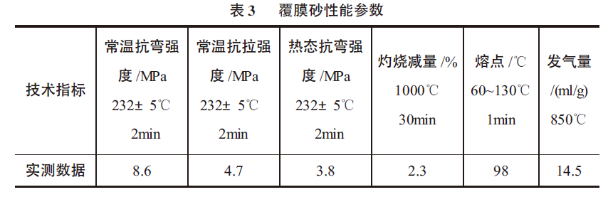 原砂采用笔者公司使用的硅砂,粒度40/70目,树脂采用国内某知名厂家生产的铸造用碱性酚醛树脂及固化剂,树脂型号为JF- 103D,固化剂型号HQG20。按照比例进行型砂混制,具体如下:树脂组份占原砂重量的1.5%,固化剂占树脂重量的25%。