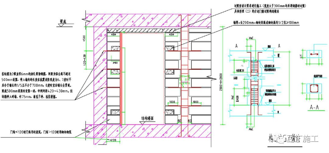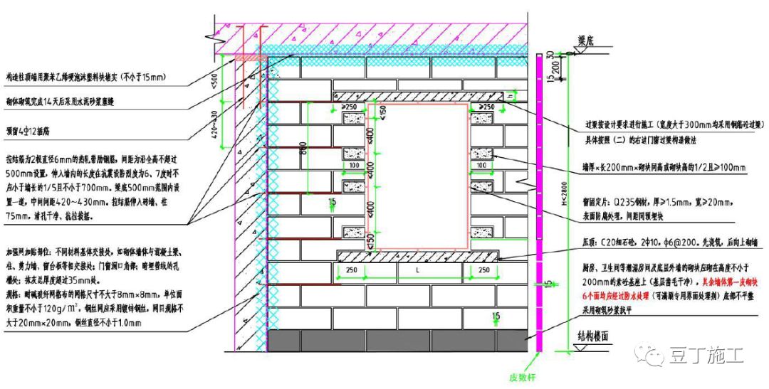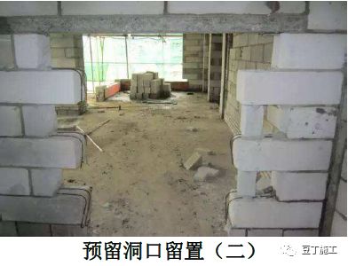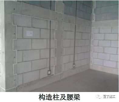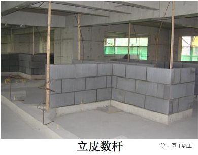 混凝土坎台施工→基层清理→定位放线→绘制排砖图→立皮数杆→砌块浇水湿润→拌制砌筑砂浆→砌筑施工→安装门窗过梁→浇筑构造柱、连系梁→顶砌塞缝
