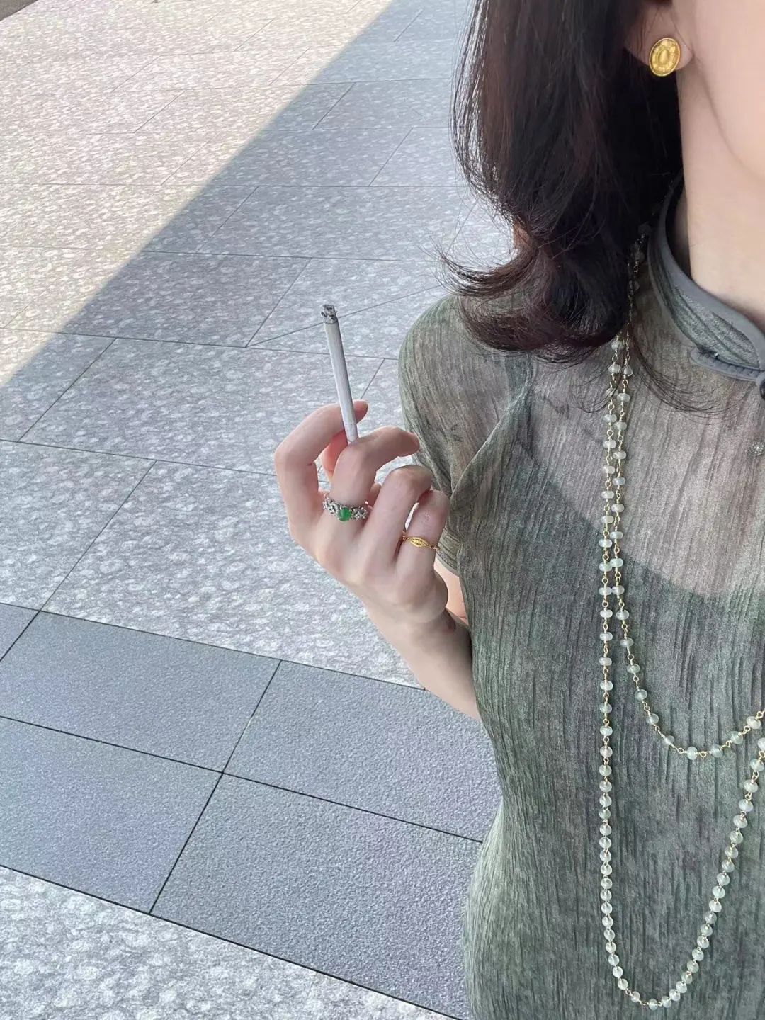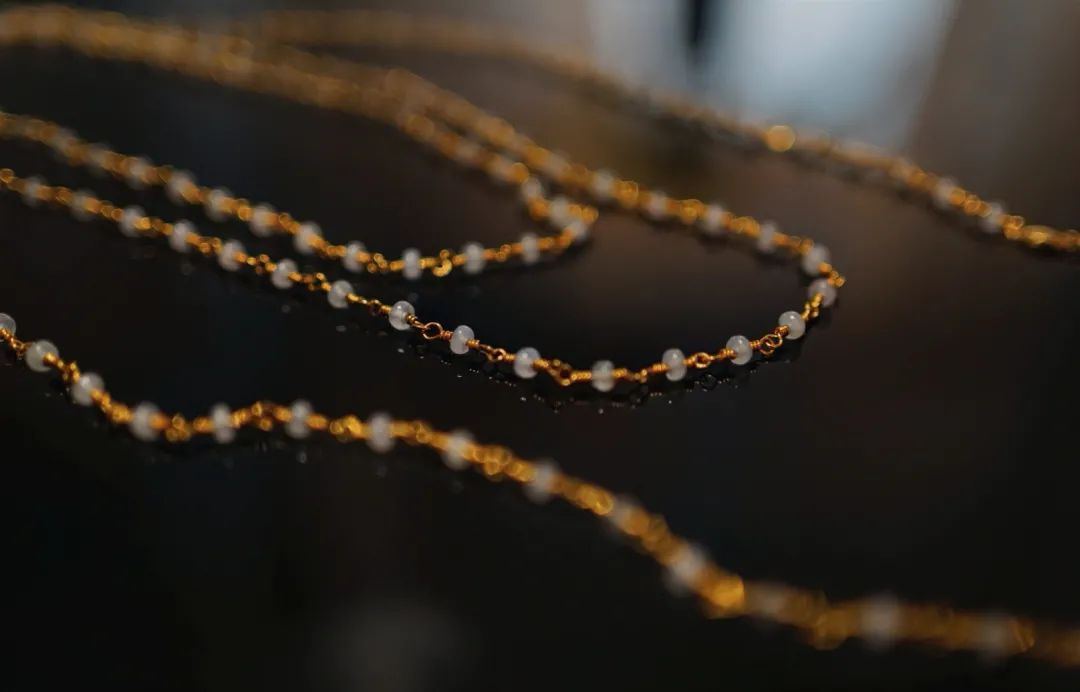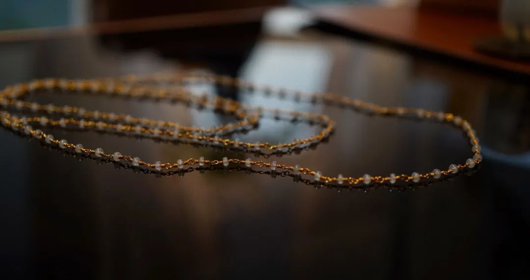黄金用的沉甸甸的,珠子项链放在手上,有压手感,