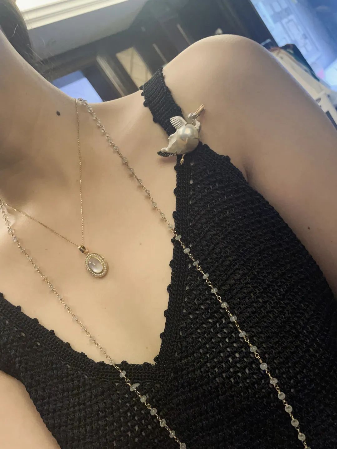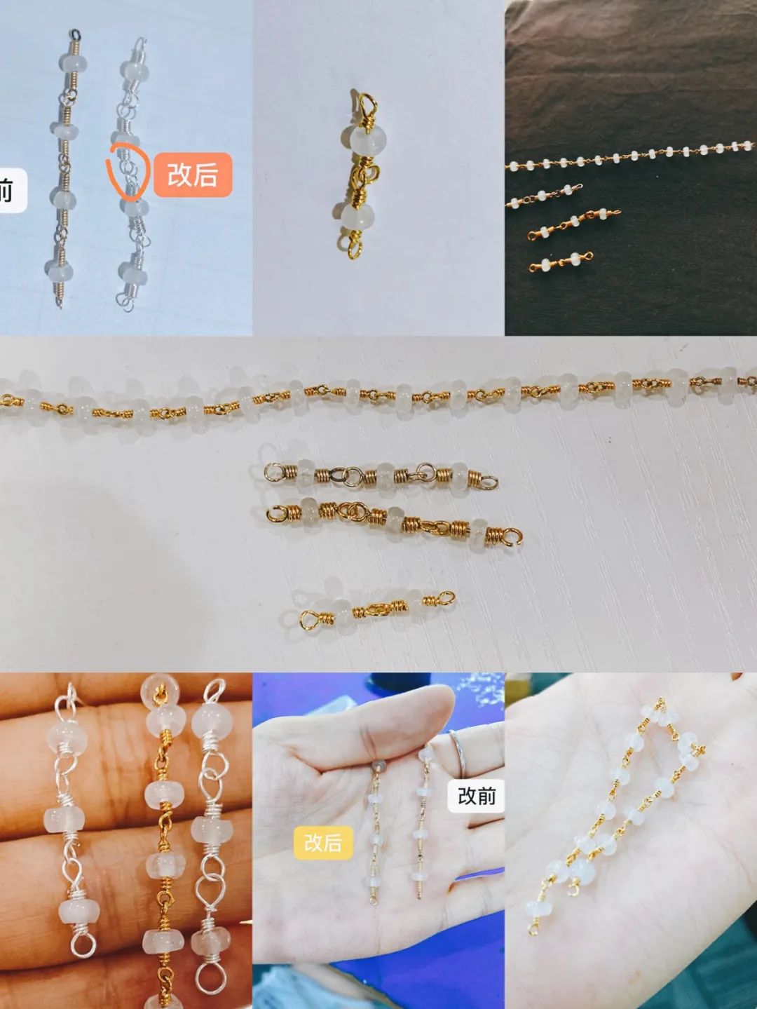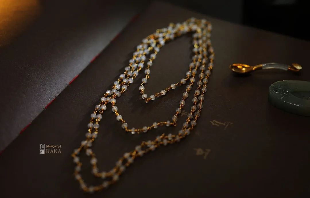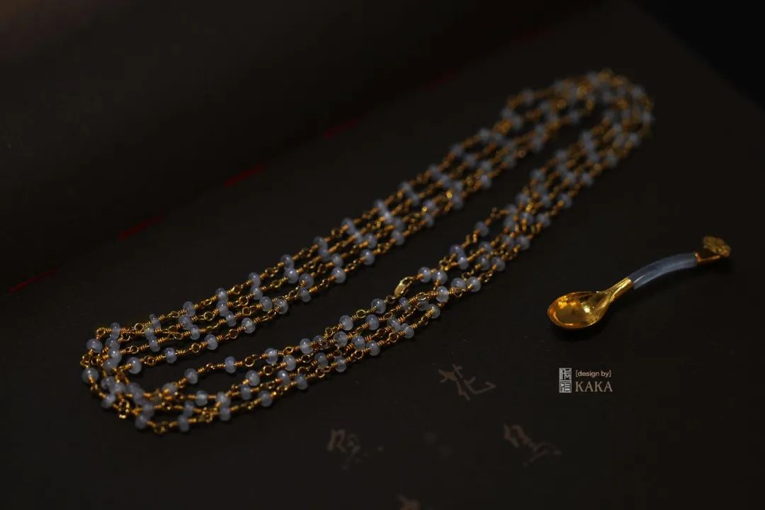 这条拜占庭风格的串珠项链,连接的细节看似笨拙,有一种手工的时光的感觉,工时真的是好长!包括我们做了一次次的调整: