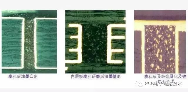 对于表面贴装板,尤其是BGA及IC的贴装对导通孔塞孔要求必须平整,凸凹正负1mil,不得有导通孔边缘发红上锡;导通孔藏锡珠,为了达到客户的要求,导通孔塞孔工艺可谓五花八门,工艺流程特别长,过程控制难,时常有在热风整平及绿油耐焊锡实验时掉油;固化后爆油等问题发生。现根据生产的实际条件,对PCB各种塞孔工艺进行归纳,在流程及优缺点作一些比较和阐述: