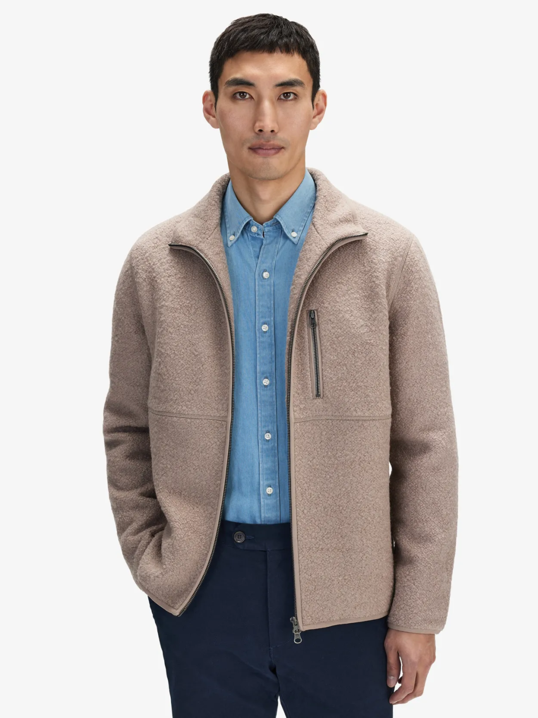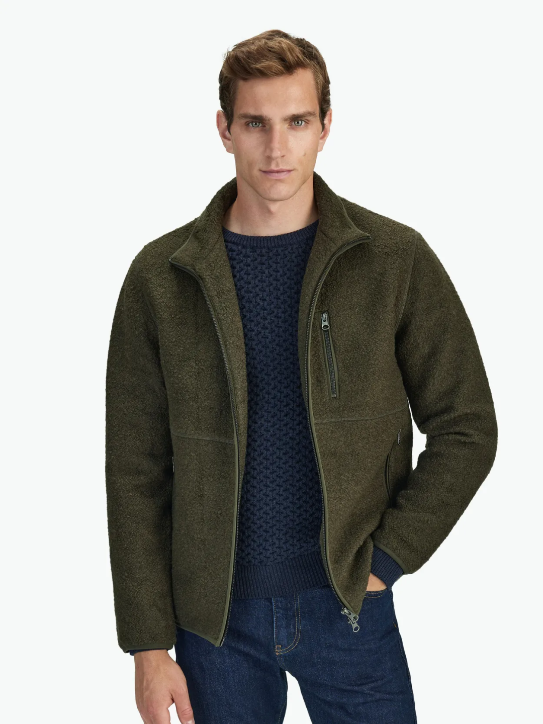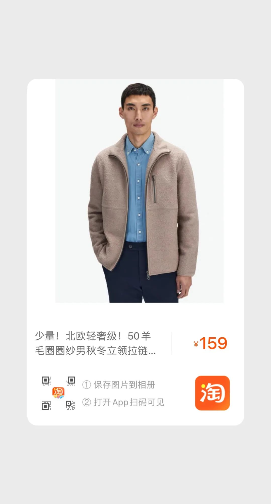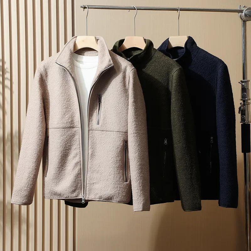 【淘宝】https://m.tb.cn/h.535yROJ?tk=xA73dC3ak6q CZ3457 「少量!北欧轻奢级!50羊毛圈圈纱男秋冬立领拉链时尚休闲夹克外套」
