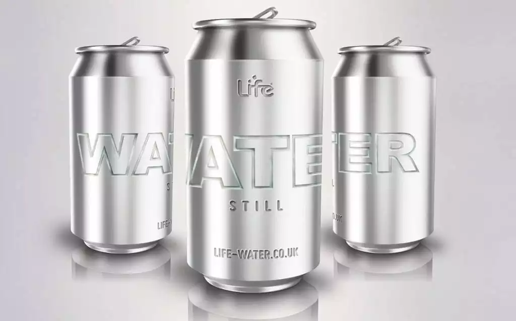2018年,英国矿泉水品牌 Life Water 公司就曾推出铝罐包装矿泉水,作为与伦敦自然历史博物馆合作的一部分。