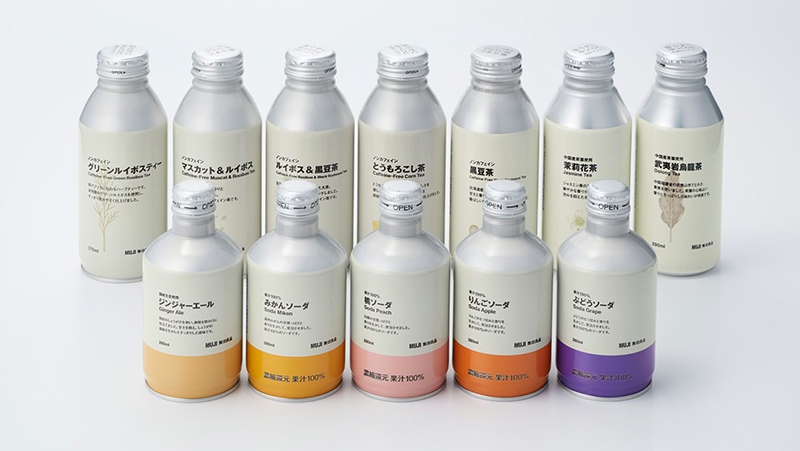 茶饮也在掀起更换PET包装的大幕。今年“世界地球日”,日本知名的茶饮品牌MUJI (无印良品)将塑料瓶陆续换成铝制瓶,第一批亮相的新包装就有12款。铝瓶包装延续了MUJI一贯的风格和气质,在货架上的呈现效果令人惊喜。