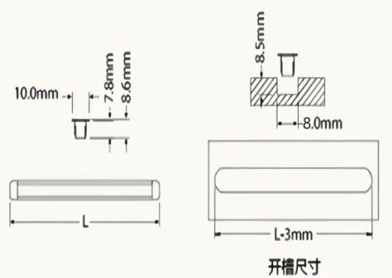 ④开槽尺寸:槽深:8.5mm/槽宽:8mm/槽高:侧板底端距底板预留3mm往上开通