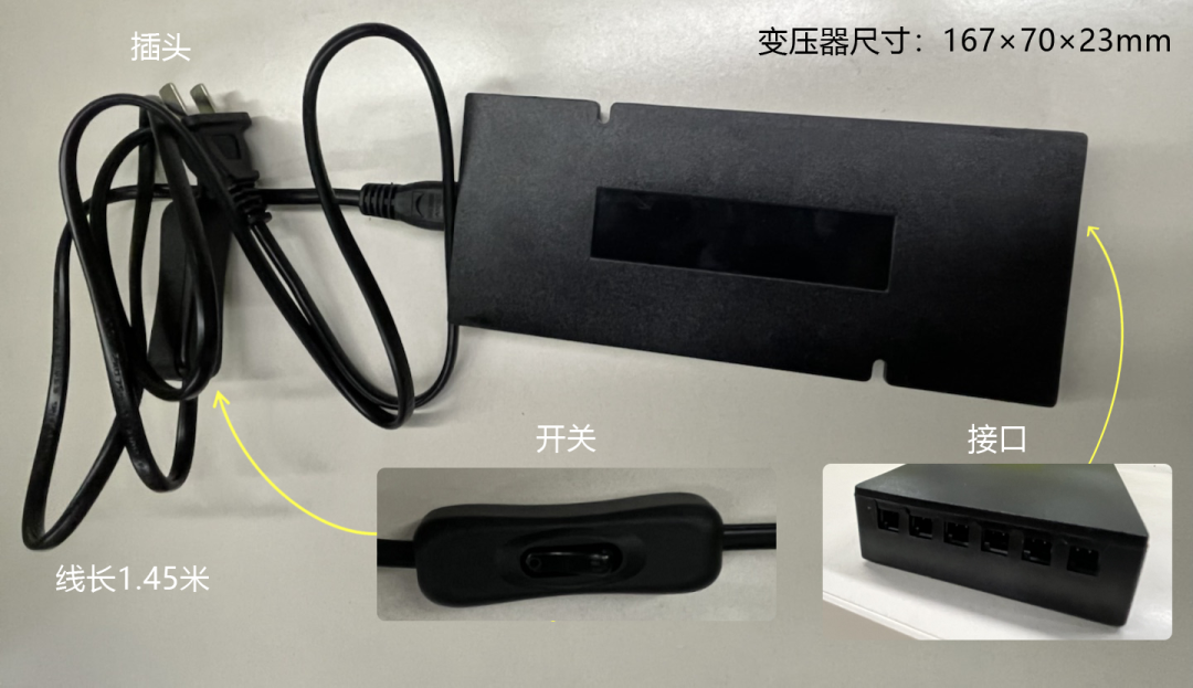 由变压器、开关、组成,最多接六个灯,灯具数量超出六个则需要增加变压器