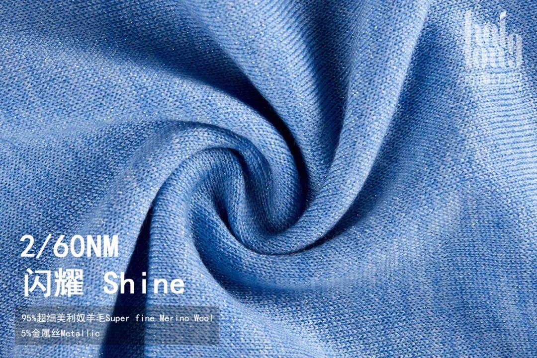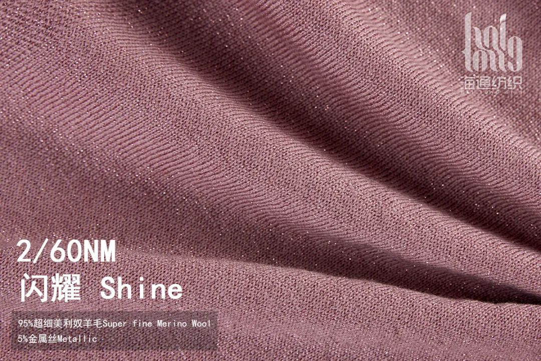 闪耀(Shine)纱线选用高密度高品质2/60的羊毛纱线,配合进口极细无感金葱切片,哪怕贴身穿着,也柔软亲肤,如同婴儿细腻的脸蛋,让人爱不释手。