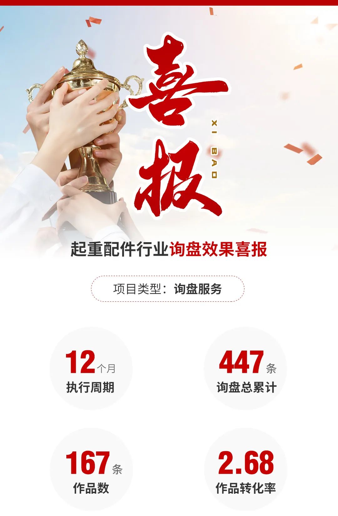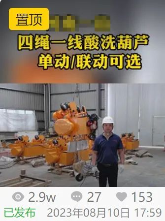 看到以上这些数据,我们项目主管对于电动葫芦产品的深入研究得到了回报,客户对接人上镜时一遍一遍的扣细节的辛苦付出得到了回报。