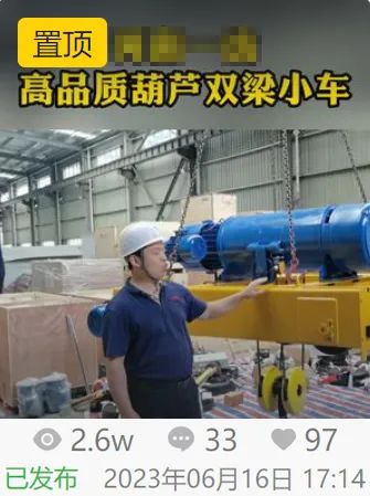 该项目对接人非常认同我们的观点,在他密切的配合下,在项目主管对电动葫芦产品深度了解的情况下,这类人物上镜的产品讲解视频,为该项目带来了非常多高质量的询盘。