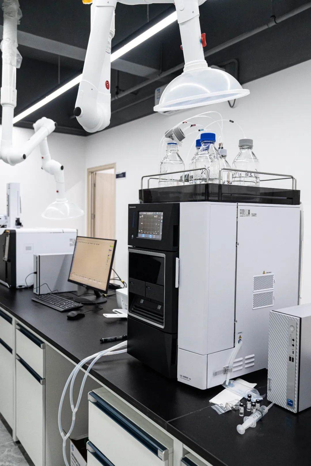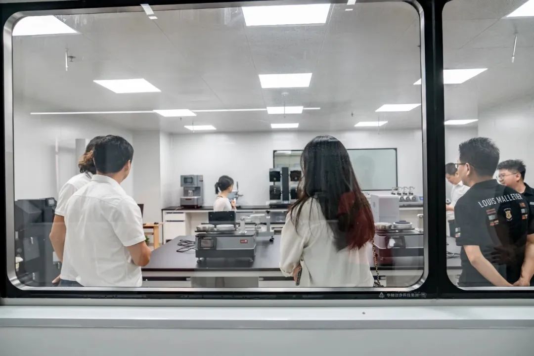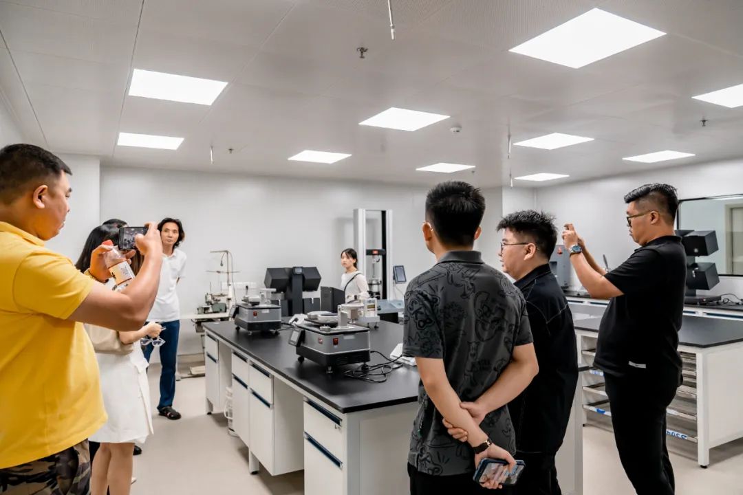 开业仪式后,戴瑞恒总经理领各协会领导负责人参观了在场检测技术有限公司,了解检测实验室整体环境与实验设备。参观过程中,大家对设备、环境提出专业化建议,并对在场检测中心的提升与发展前景做出宝贵的建设性指导,共同期望在场检测中心能为大朗毛织行业发展奠定坚实基础。