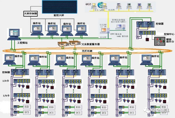 但是较大规模DCS系统中对危险性较高,事故后果极其严重的岗位会设置独立的ESD系统(紧急停车系统)按照安全、独立的原则与DCS分开设置,其原因是:①降低控制功能和安全功能同时失效的概率,当维护DCS部分故障时也不会危及安全保护系统。②大型装置或大型机械设备ESD的响应速度越快越有利于保护设备,避免事故扩大,也有利于分辨事故原因的记录;