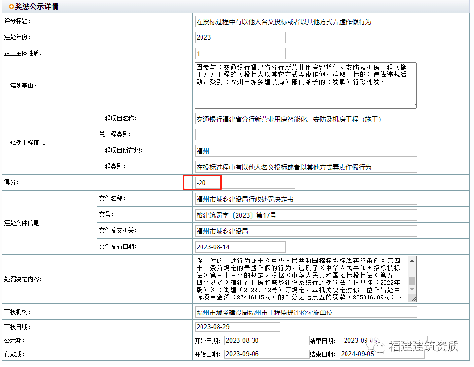 因参与(交通银行福建省分行新营业用房智能化、安防及机房工程(施工))工程的(投标人以其它方式弄虚作假,骗取中标的)违法违规活动,受到(福州市城乡建设局)部门给予的(罚款)行政处罚。