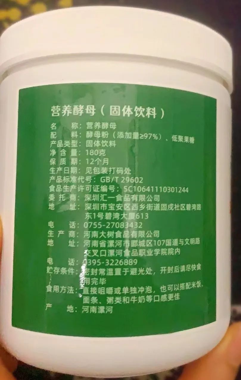 配料:酵母粉(添加量≥97%)、低聚果糖