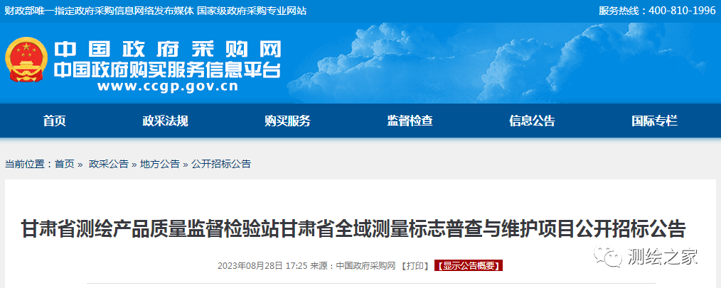 【招标】200万元!甘肃省全域测量标志普查与维护项目公开招标公告