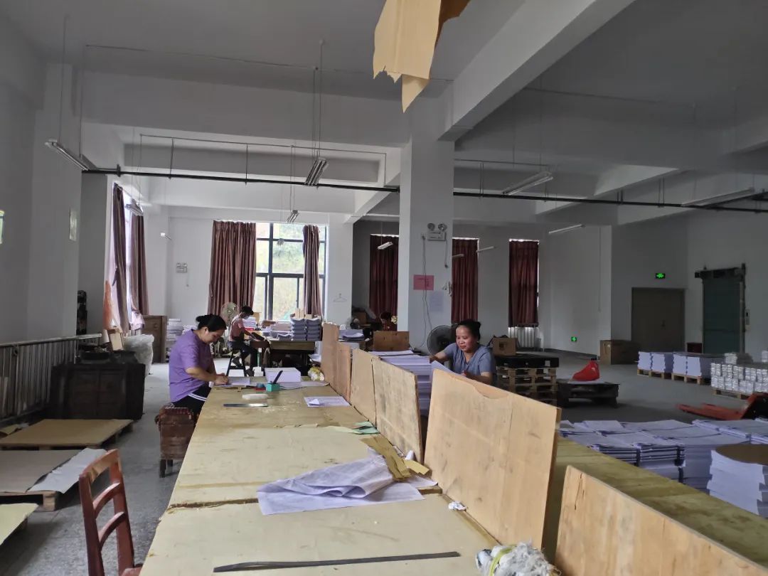 在生产车间里,大家正有条不紊地进行簿籍的装订、分配、包装以及各校征订的学科单元练习排版、校验、印刷和分拣。对生产过程中的每一环节都严格把控,确保能够如期保质保量地交付簿籍与学科单元练习,助力学生秋季开学。