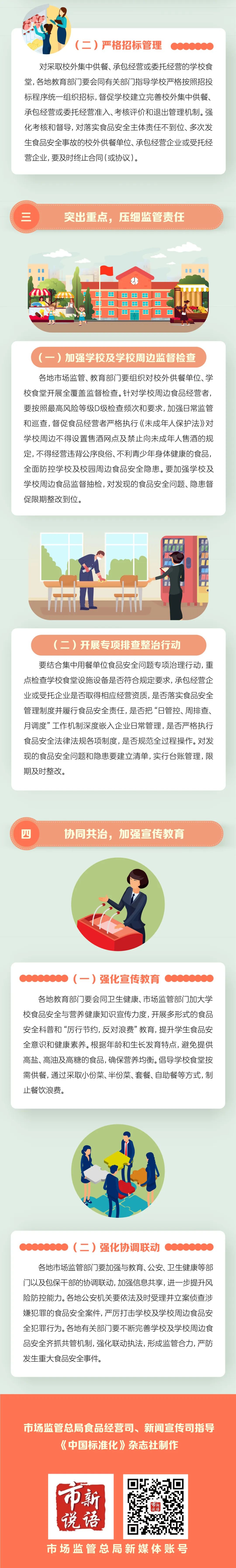 各地教育部门要切实强化行业管理责任,加强对校外供餐单位和学校的食品安全教育和日常管理,督促学校严格落实食品安全校长(园长)负责制和学校相关负责人陪餐制度。要会同有关部门指导学校严格按照招投标程序统一组织招标,督促学校建立完善校外集中供餐、承包经营或委托经营准入、考核评价和退出管理机制。