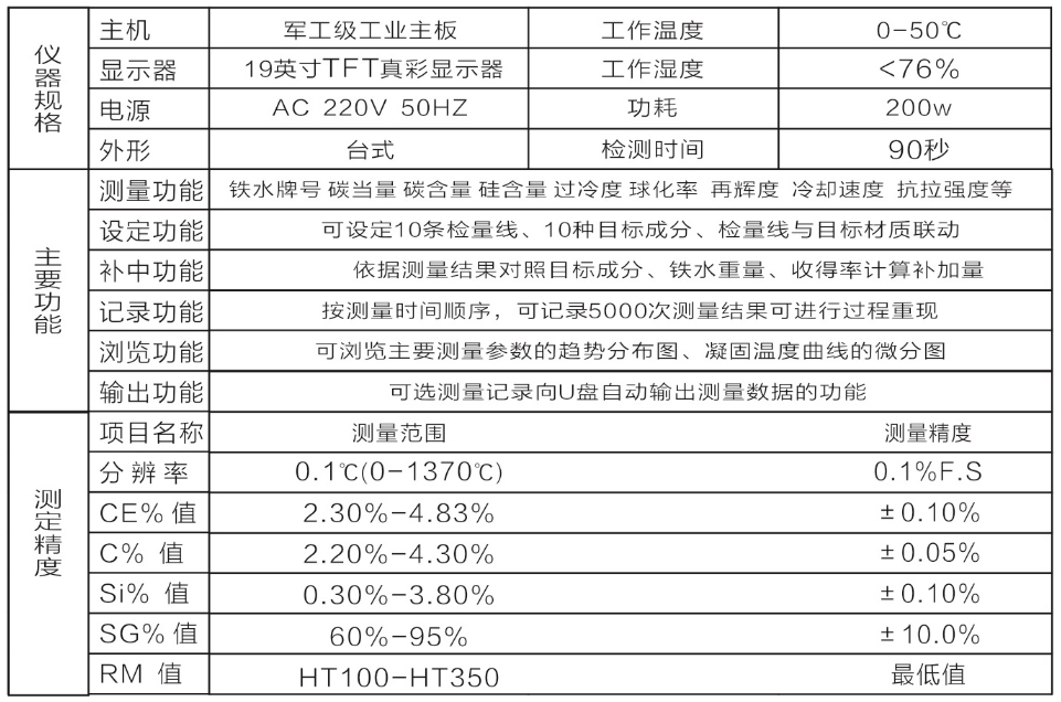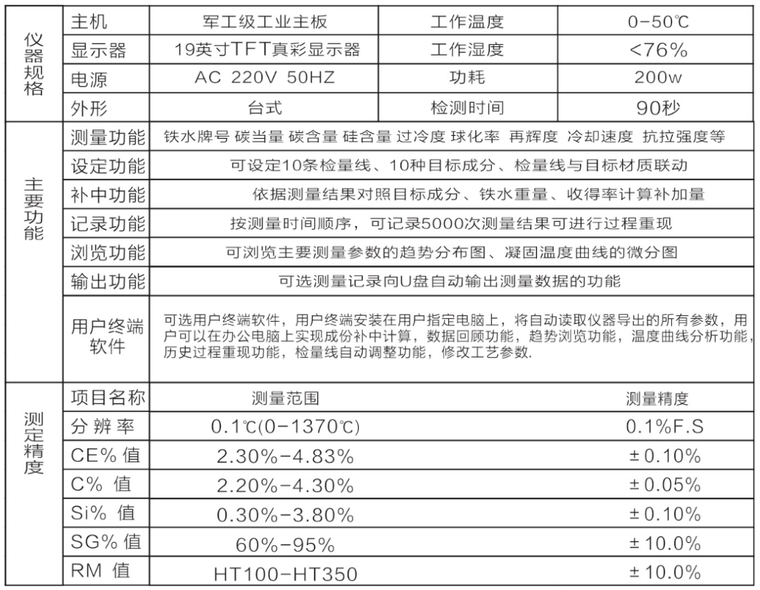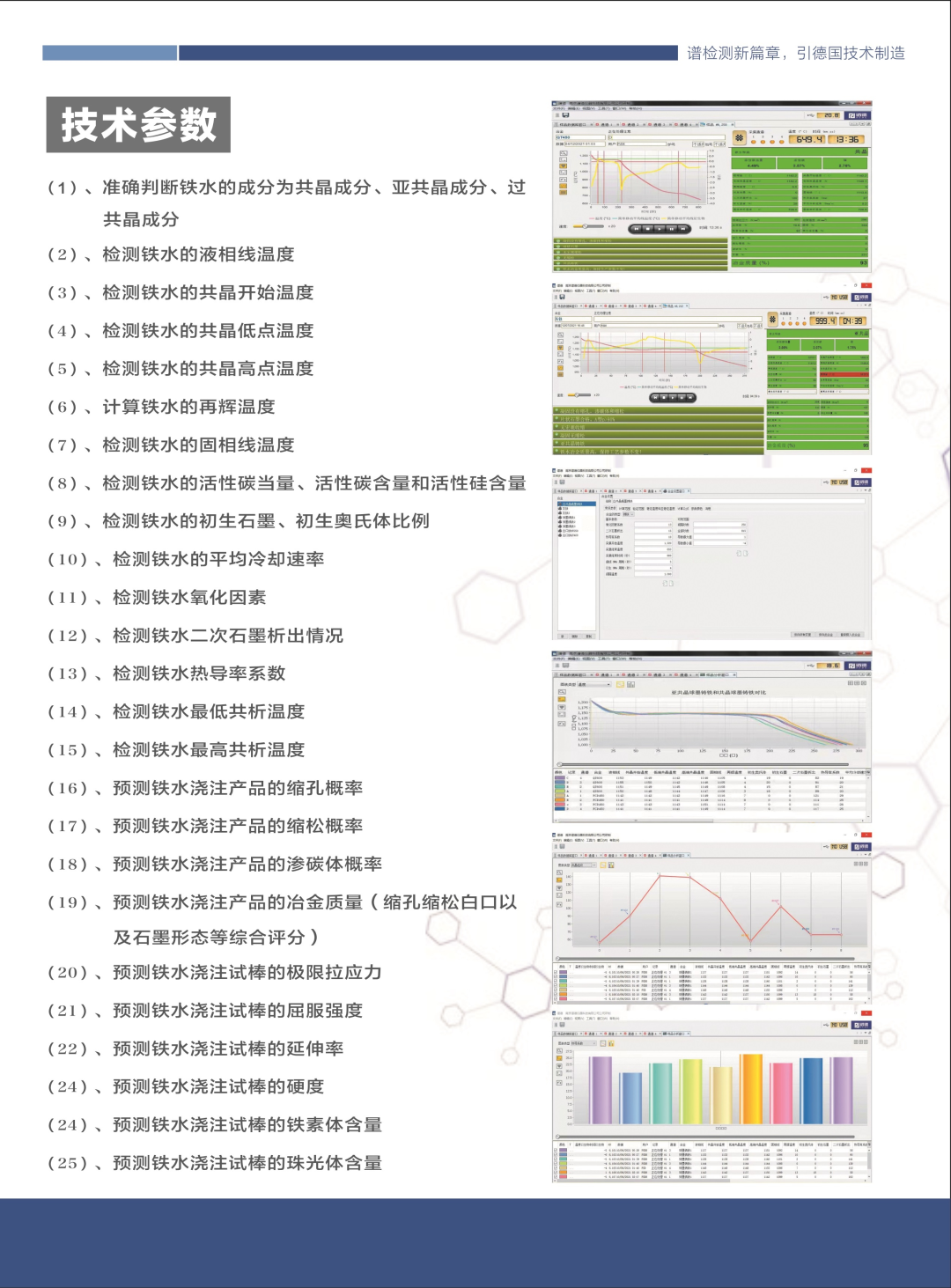 南京谱德仪器PD-GD型铸铁热分析仪,能准确确定铁水为:亚共晶,共晶,过共晶,活性成分,初生奥氏体,初生石墨,再辉度,氧化因素,二次石墨析出量,热导率,渗碳体(白口),缩孔缩松,反白口及冶金质量综合评分等决定铸件质量的冶金参数,能使铁水真实凝固的整个过程直观,可视化,数据化,包括对孕育效果评估(缺乏和过孕育),南京谱德技术服务人员在安装调试期间,解释铁水整个凝固过程和针对出现的问题,提供解决方向。