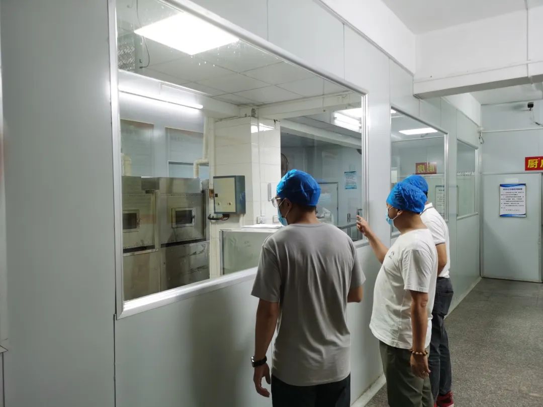 我校检查小组对配餐公司的消毒记录表、进货台账、操作间的卫生、食堂工作人员是否卫生操作等进行了一系列的检查。最后,黄校长针对午餐质量、卫生、安全等问题与配餐公司负责人进行了深入的沟通,强调配餐公司做好细节管理,制度化管理,以保证为师生提供更安全、优质的配餐。